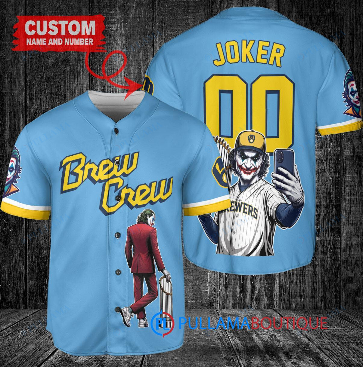 Milwaukee Brewers x Joker DC Comics with Trophy Custom Baseball Jersey Blue City Connect