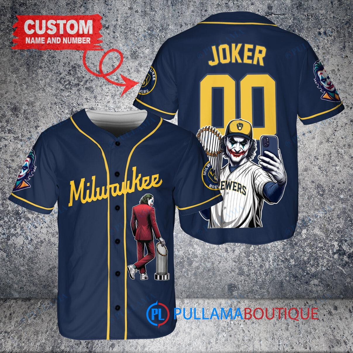 Milwaukee Brewers x Joker DC Comics with Trophy Custom Baseball Jersey Navy