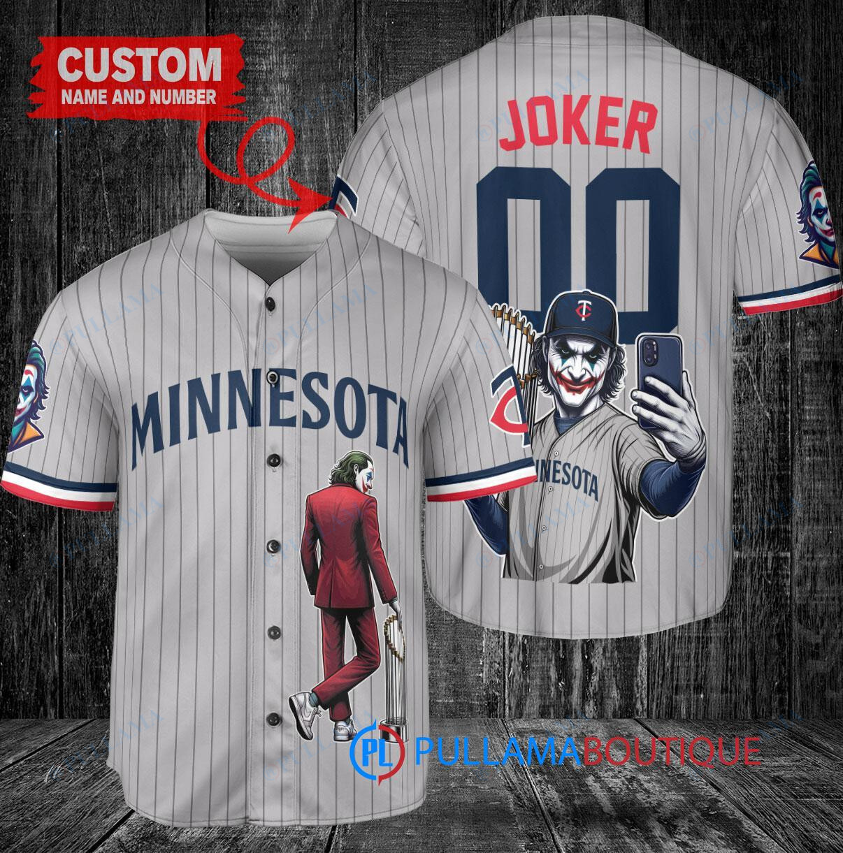 Minnesota Twins x Joker DC Comics with Trophy Custom Baseball Jersey Gray Road