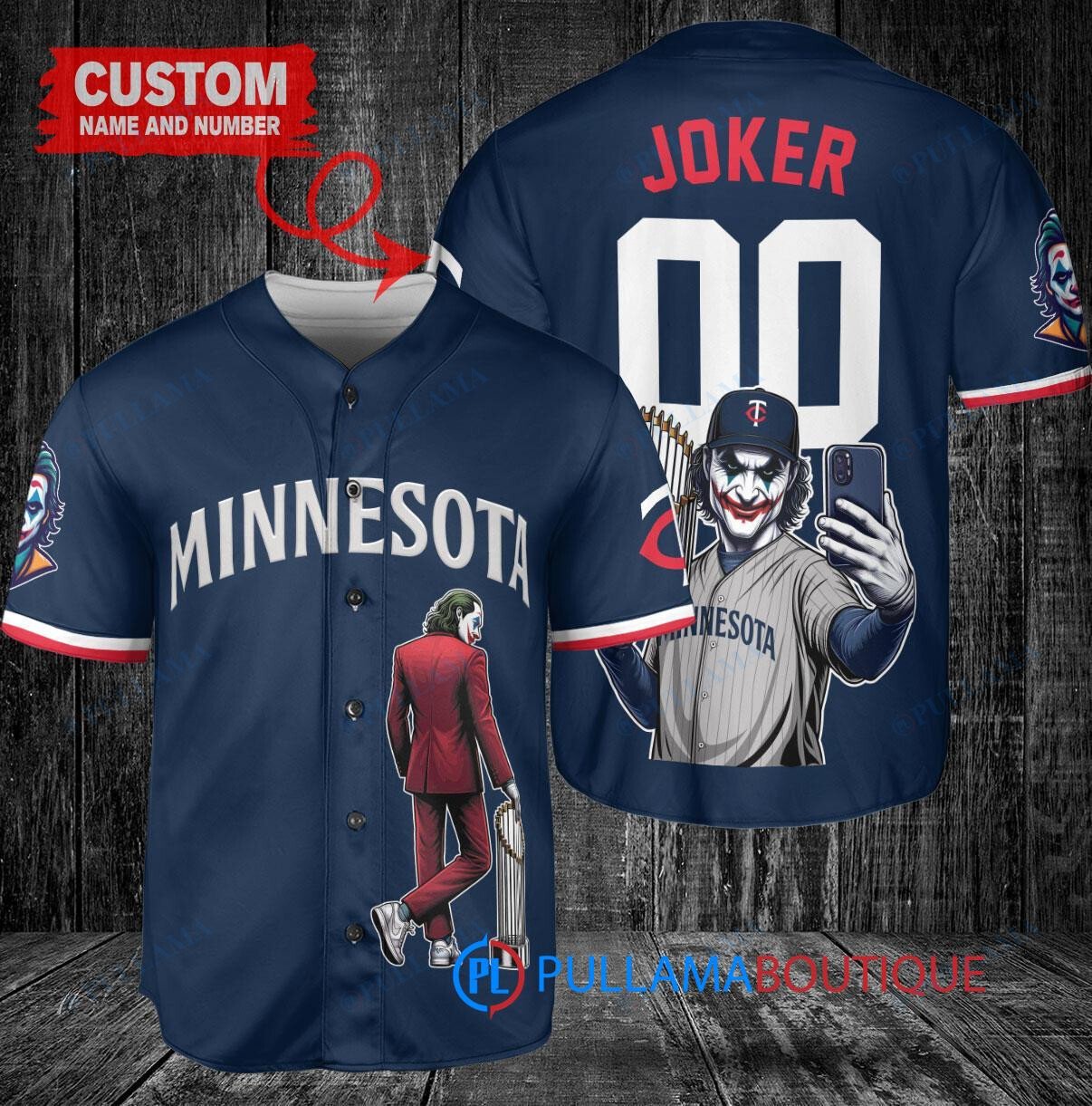 Minnesota Twins x Joker DC Comics with Trophy Custom Baseball Jersey Navy