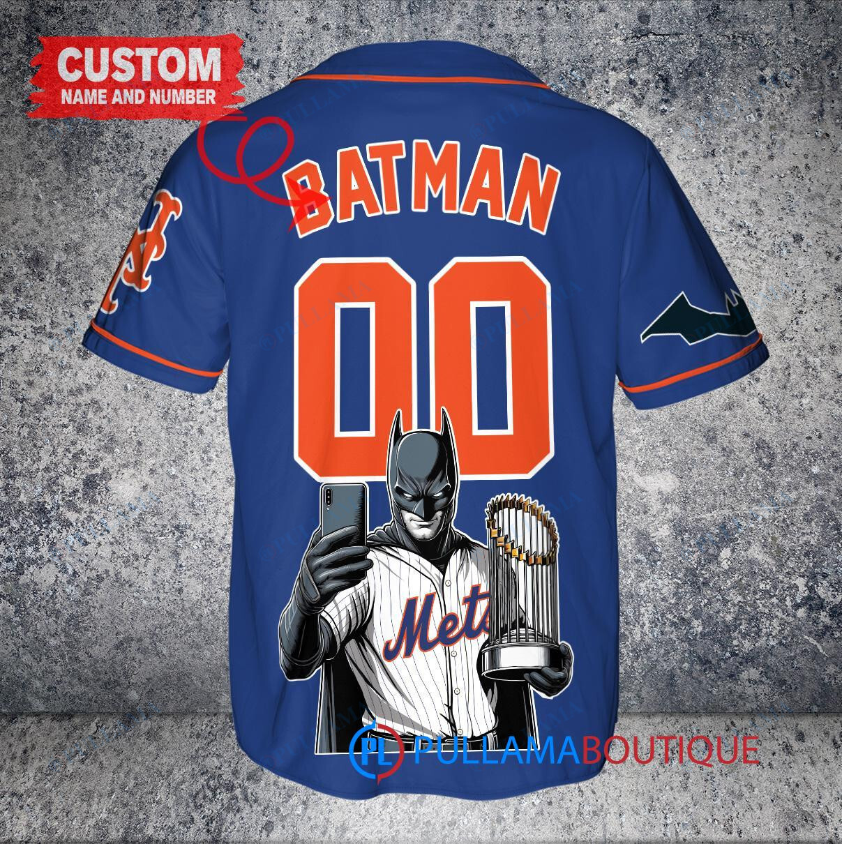 New York Mets x DC Comics Batman The Dark Knight with Trophy Custom Baseball Jersey Royal