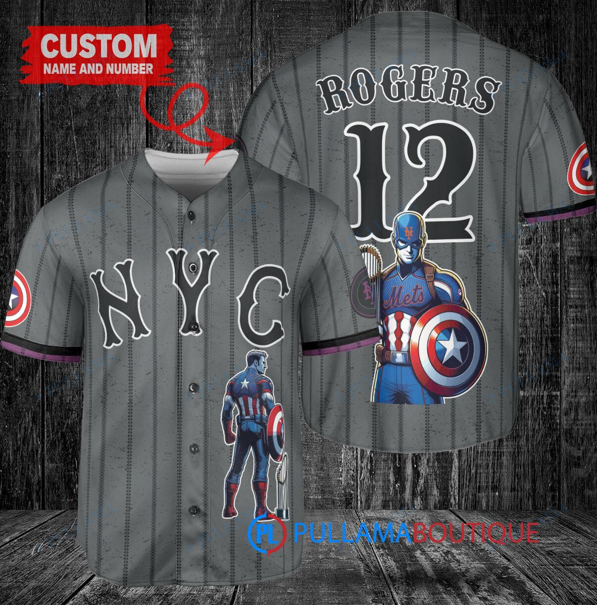 Show your support for the New York Mets with this custom baseball jersey featuring Marvel’s Captain America Steve Rogers design. This Graphite City Connect jersey is perfect for any Mets fan looking to stand out in the crowd. Made with high-quality materials, this jersey is comfortable to wear while showcasing your love for both the Mets and Captain America. Get your hands on this unique and stylish jersey today and be the envy of all your friends at the next game!