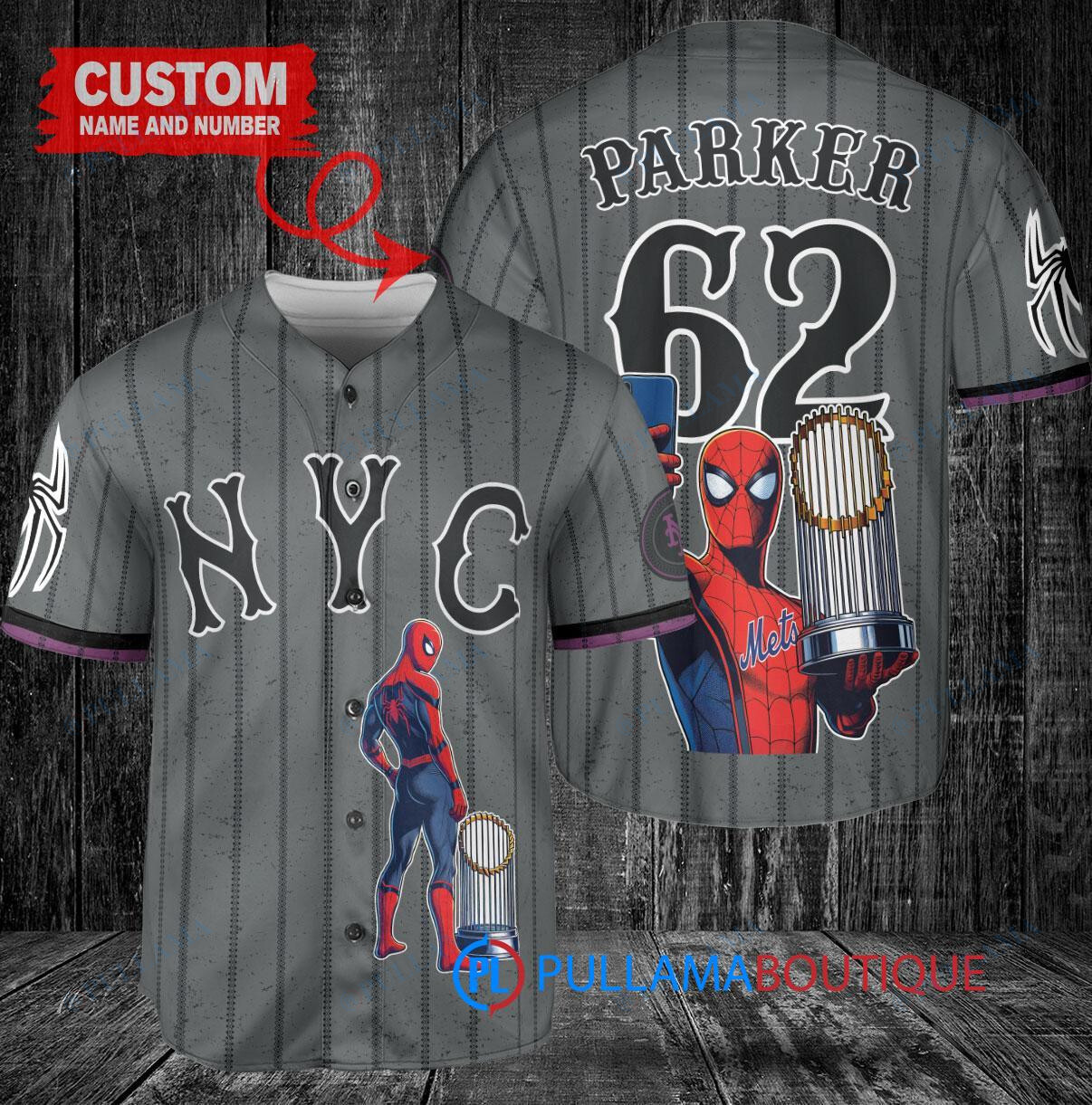Show off your love for the New York Mets and Marvel’s Spiderman with this custom baseball jersey in graphite color. This City Connect jersey features a unique design with Spiderman holding a trophy, perfect for any fan looking to stand out. Made with high-quality materials, this jersey is a must-have for any Mets or Spiderman enthusiast. Get yours today and swing into action with style!