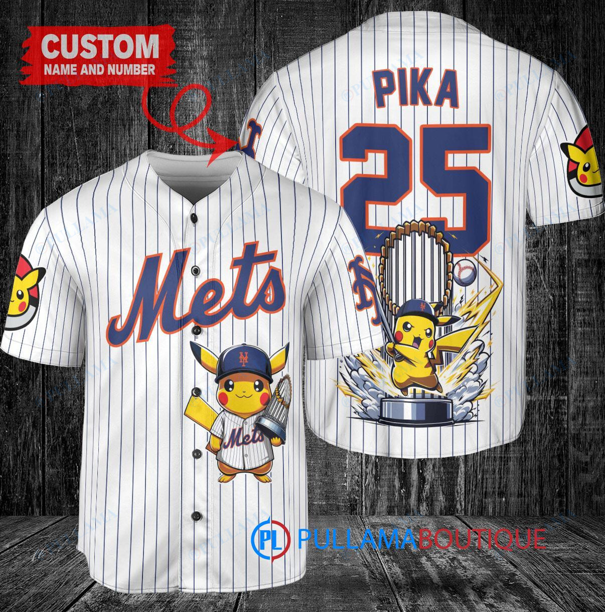 New York Mets x Pikachu Pokemon with Trophy Custom Baseball Jersey White