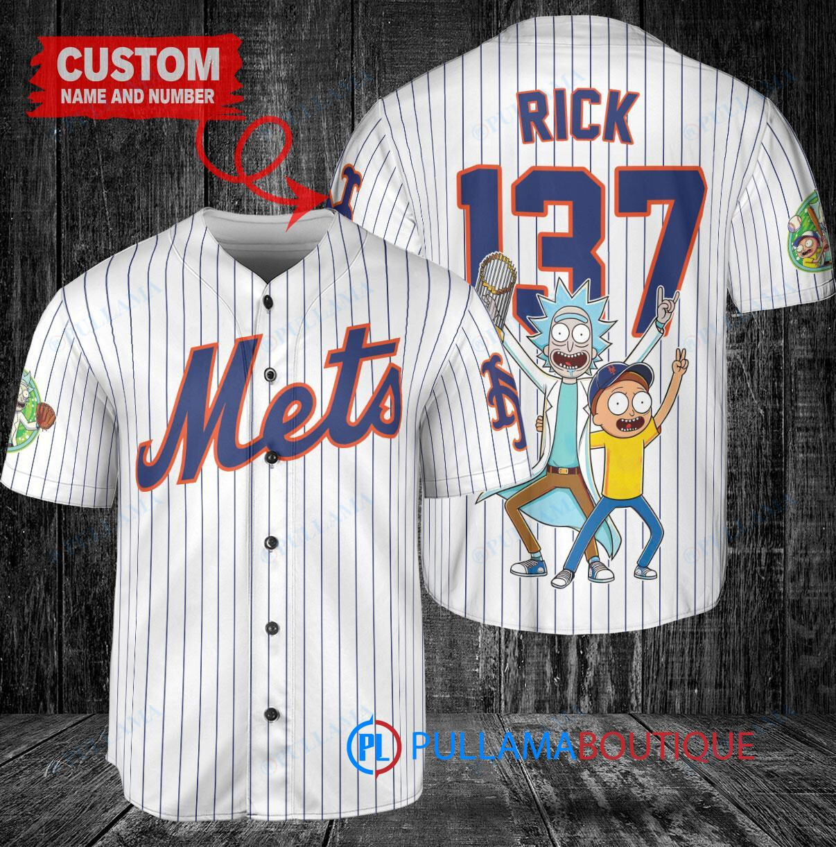 Show off your love for the New York Mets and Rick and Morty with this custom baseball jersey in white. Featuring a unique design with a trophy graphic, this jersey is perfect for any fan looking to stand out in the crowd. Made with high-quality materials, this jersey is comfortable to wear while cheering on your favorite team. Get yours today and hit a home run with your style!