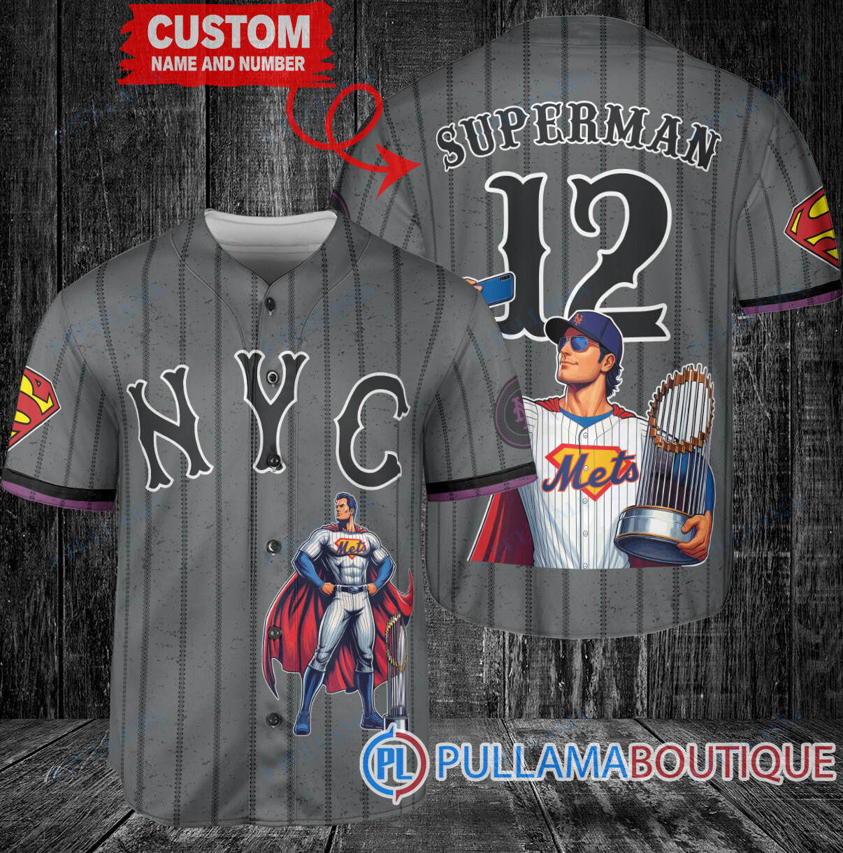 New York Mets x Superman DC Comics with Trophy Custom Baseball Jersey Graphite City Connect
