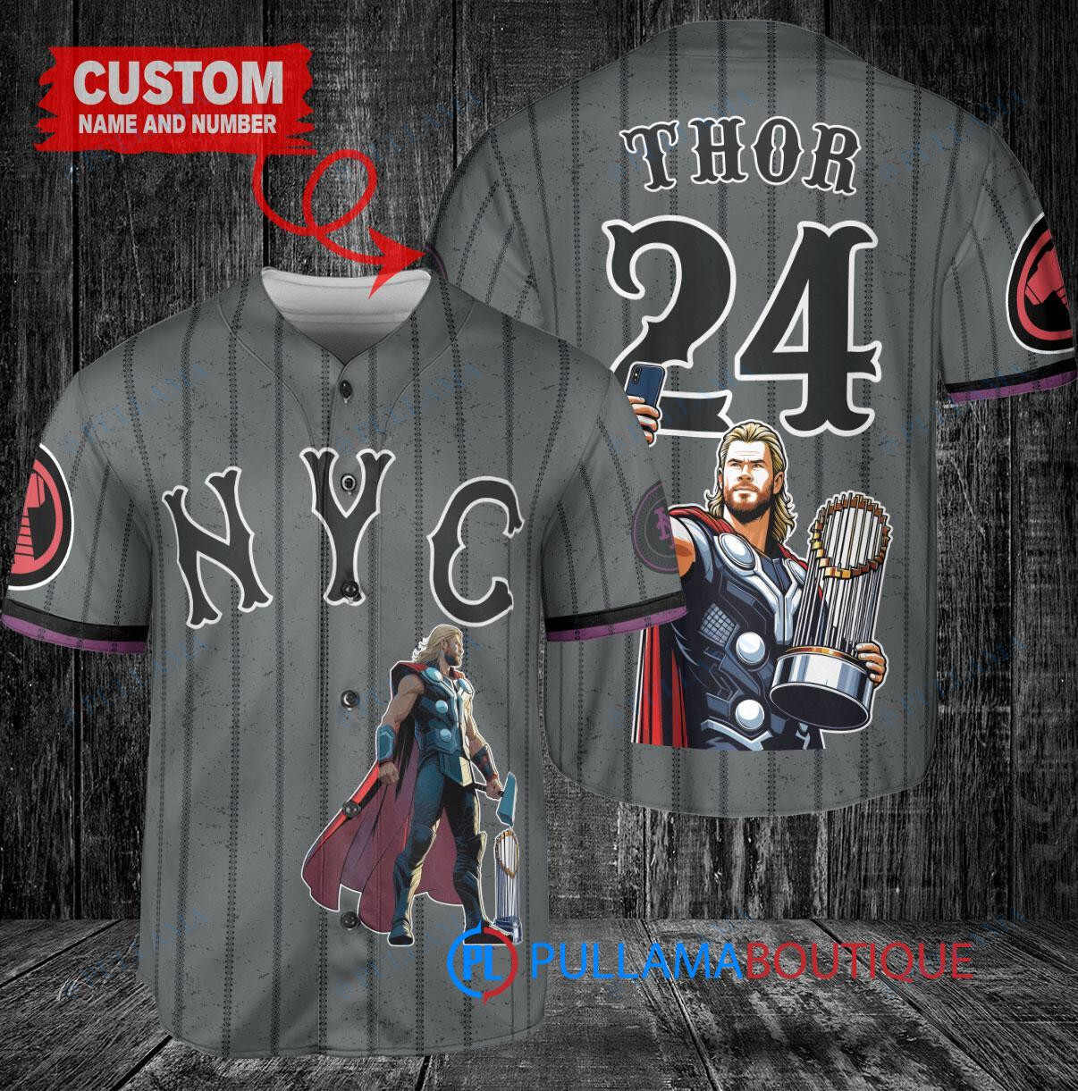 New York Mets x Thor Marvel with Trophy Custom Baseball Jersey Graphite City Connect