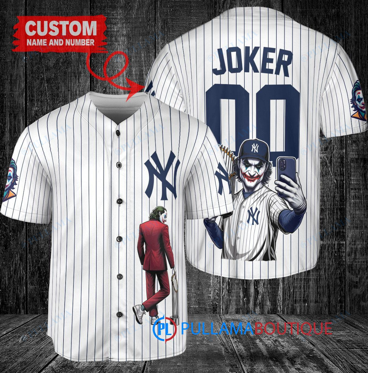 Show off your love for the New York Yankees and the Joker from DC Comics with this custom baseball jersey. The white jersey features a unique design with the Joker holding a trophy, perfect for fans of both the team and the iconic comic book character. Made with high-quality materials, this jersey is a must-have for any baseball fan looking to stand out in the crowd.