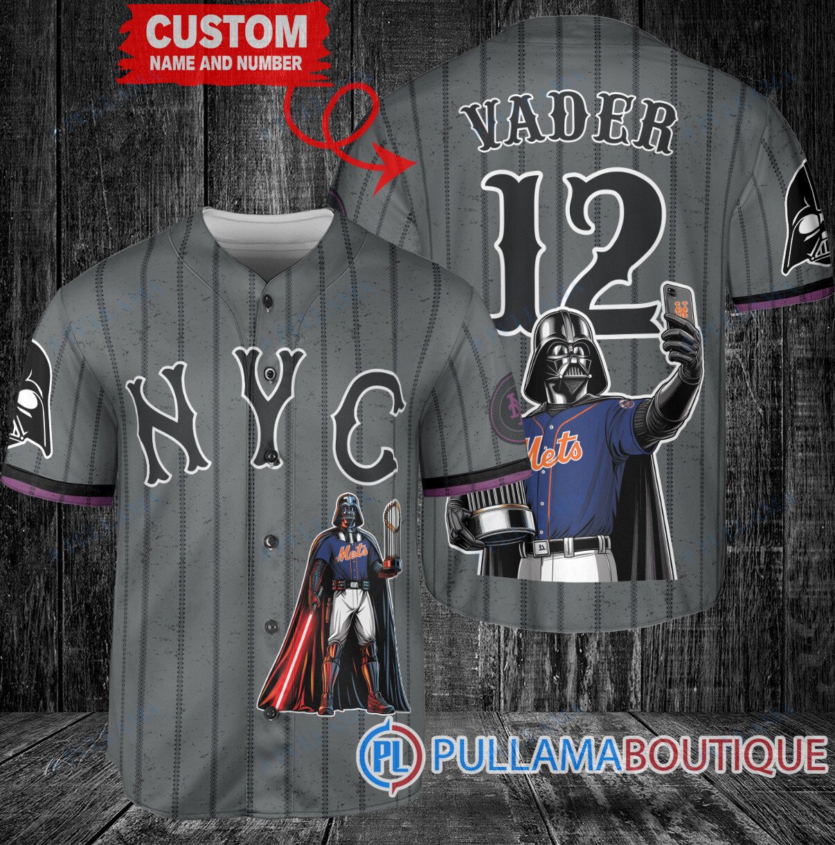 NY Mets Darth Vader Star Wars Trophy Baseball Jersey Graphite City Connect