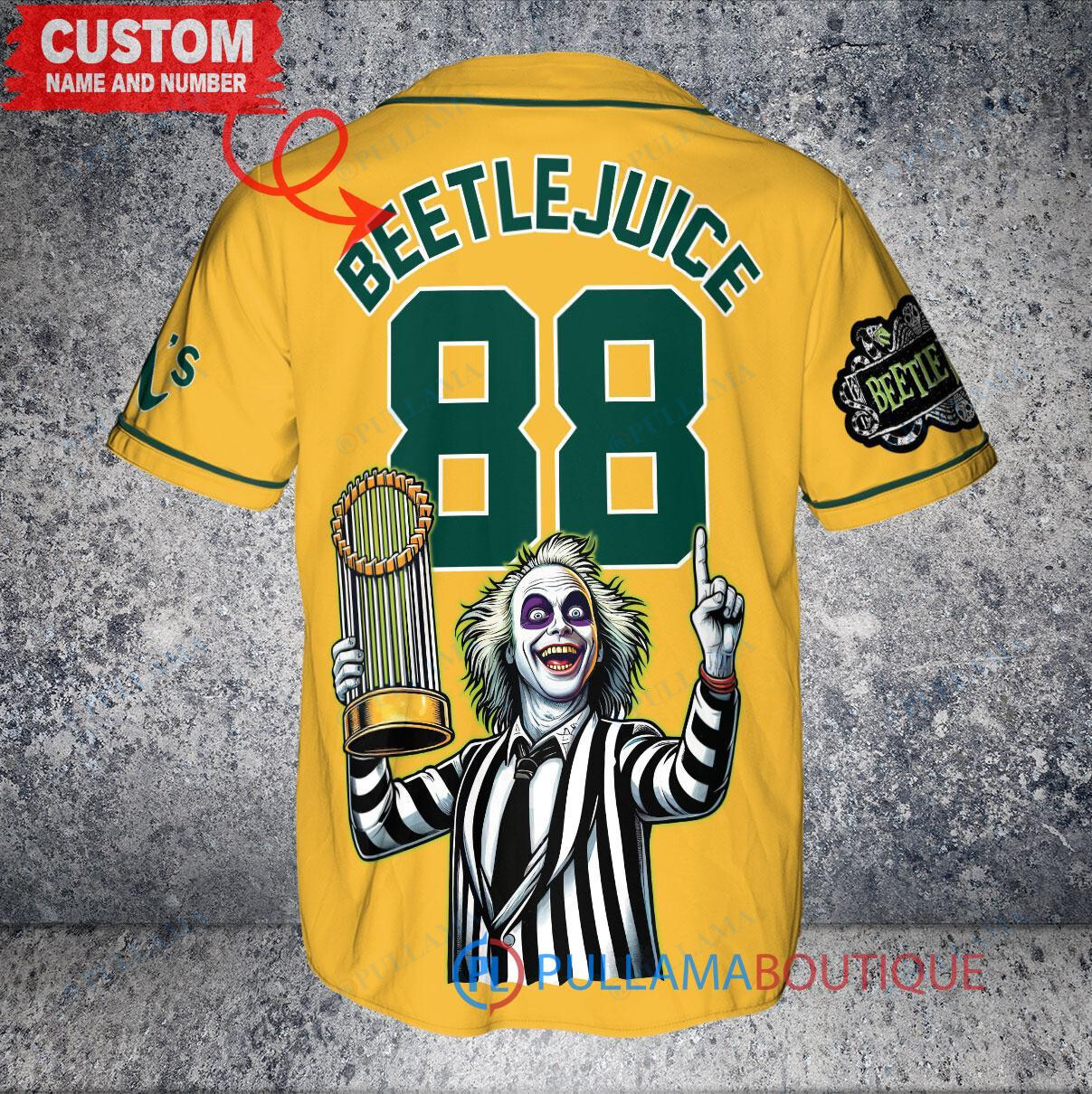Oakland Athletics Beetlejuice Halloween World Series Trophy Baseball Jersey Gold