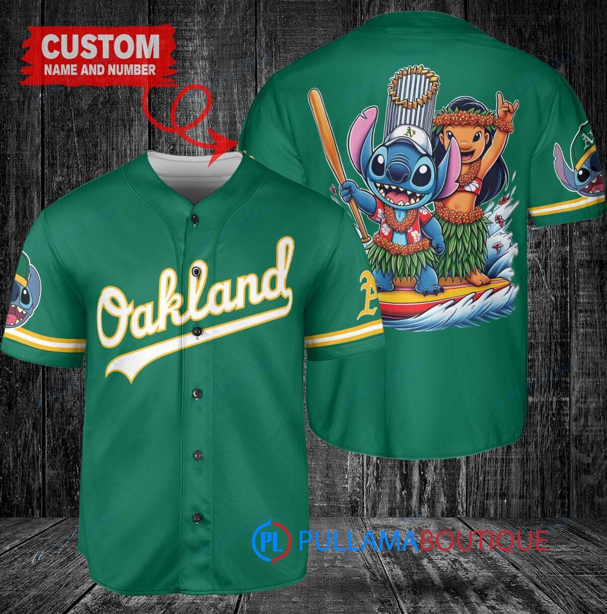 Show off your Oakland Athletics pride with this unique Lilo & Stitch baseball jersey in green. Featuring a trophy design, this jersey is perfect for any fan looking to stand out in the crowd. Made with high-quality materials, this jersey is comfortable to wear while cheering on your favorite team. Add a touch of Disney magic to your game day outfit with this one-of-a-kind jersey.