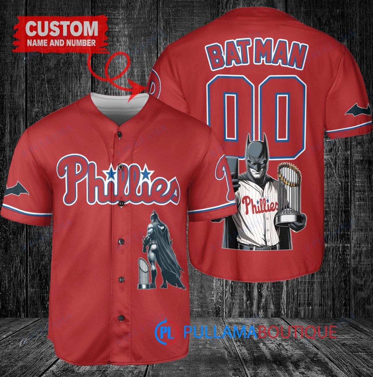 Philadelphia Phillies x DC Comics Batman The Dark Knight with Trophy Custom Baseball Jersey Red