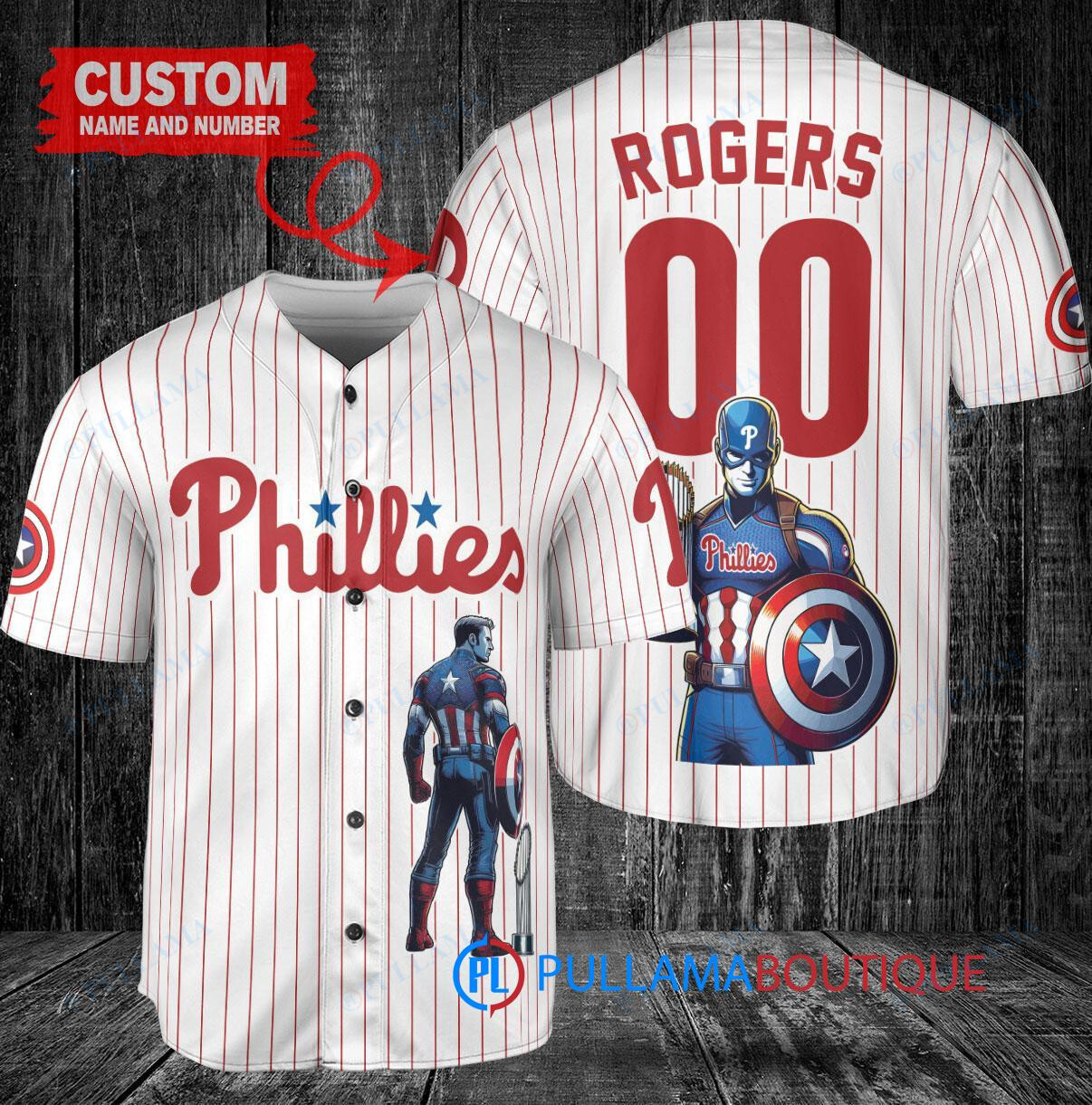 Show your support for the Philadelphia Phillies with this custom baseball jersey featuring Marvel’s Captain America Steve Rogers holding a trophy. The jersey is white in color and perfect for any fan looking to stand out at the game or represent their favorite team in style. Made with high-quality materials, this jersey is a must-have for any baseball and Marvel enthusiast.