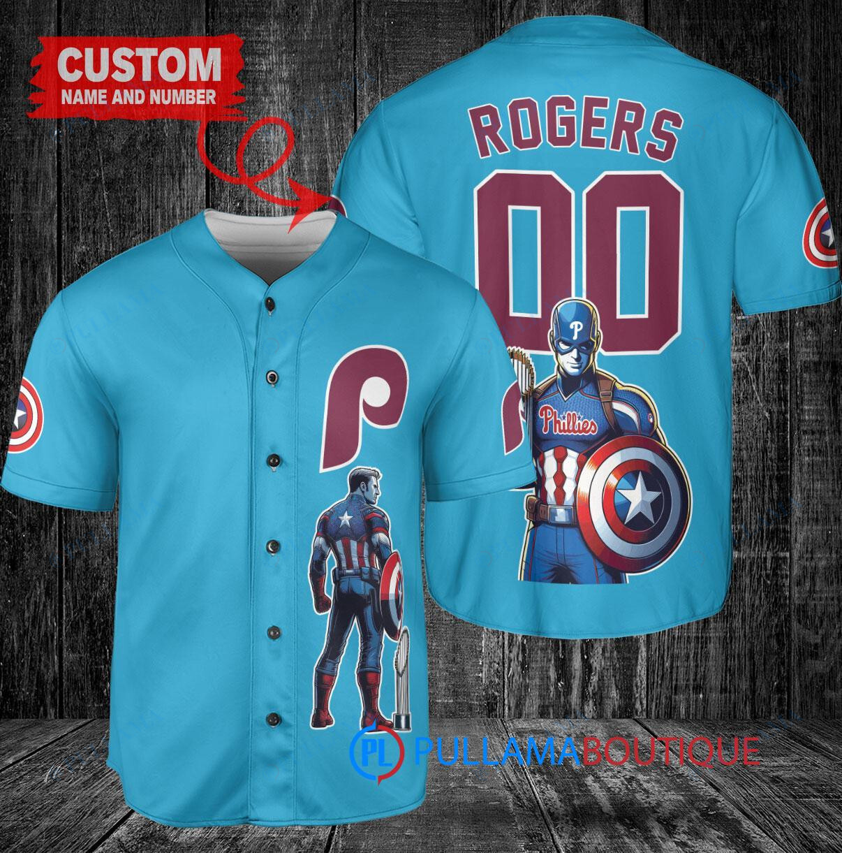 Phillies x Marvel Captain America Steve Rogers Baseball Jersey – Light Blue