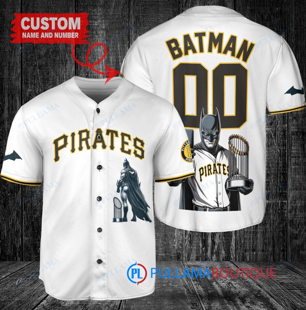 Pittsburgh Pirates x DC Comics Batman The Dark Knight with Trophy Custom Baseball Jersey White