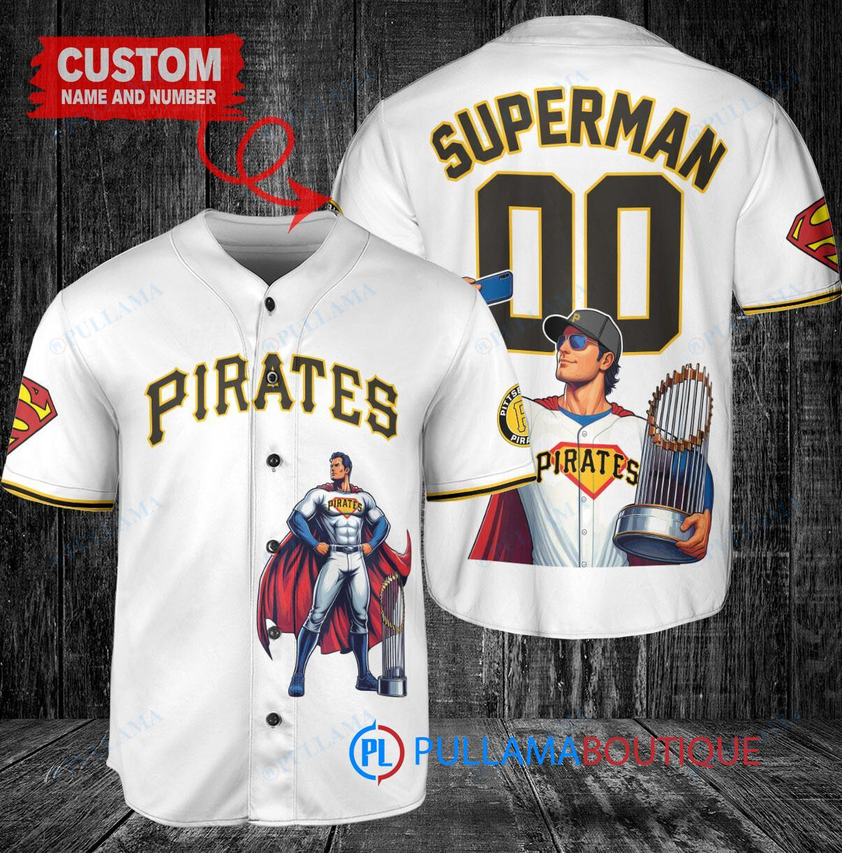 Pittsburgh Pirates x Superman DC Comics with Trophy Custom Baseball Jersey White