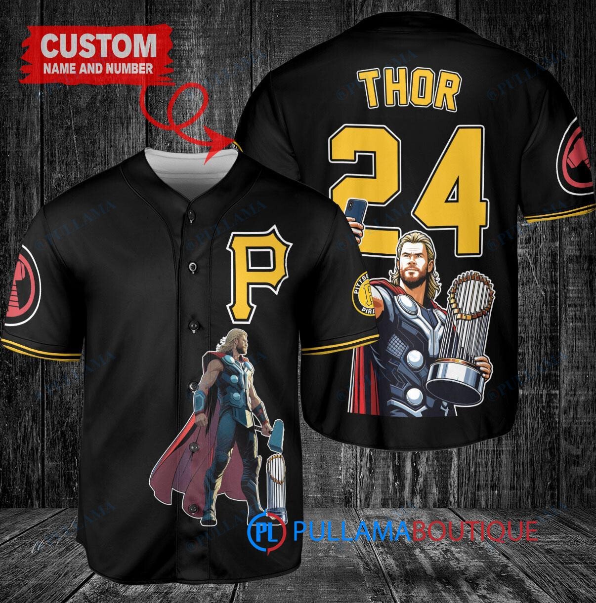 Pittsburgh Pirates x Thor Marvel with Trophy Custom Baseball Jersey Black