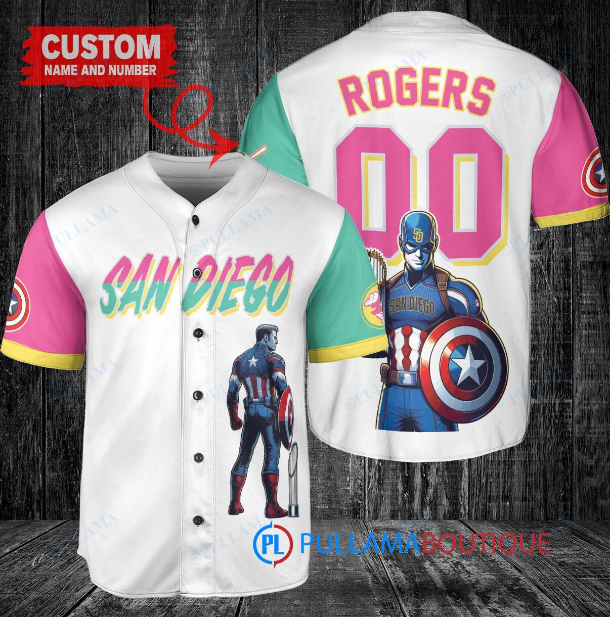 Show your support for the San Diego Padres with this Marvel Captain America Steve Rogers Baseball Jersey in white. Made with high-quality materials, this jersey features the iconic Captain America shield logo on the front and Steve Rogers’ name and number on the back. Perfect for any baseball fan or Marvel enthusiast, this jersey is a must-have for your collection.