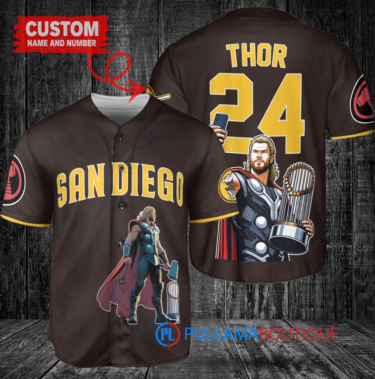 San Diego Padres x Thor Marvel with Trophy Custom Baseball Jersey Brown