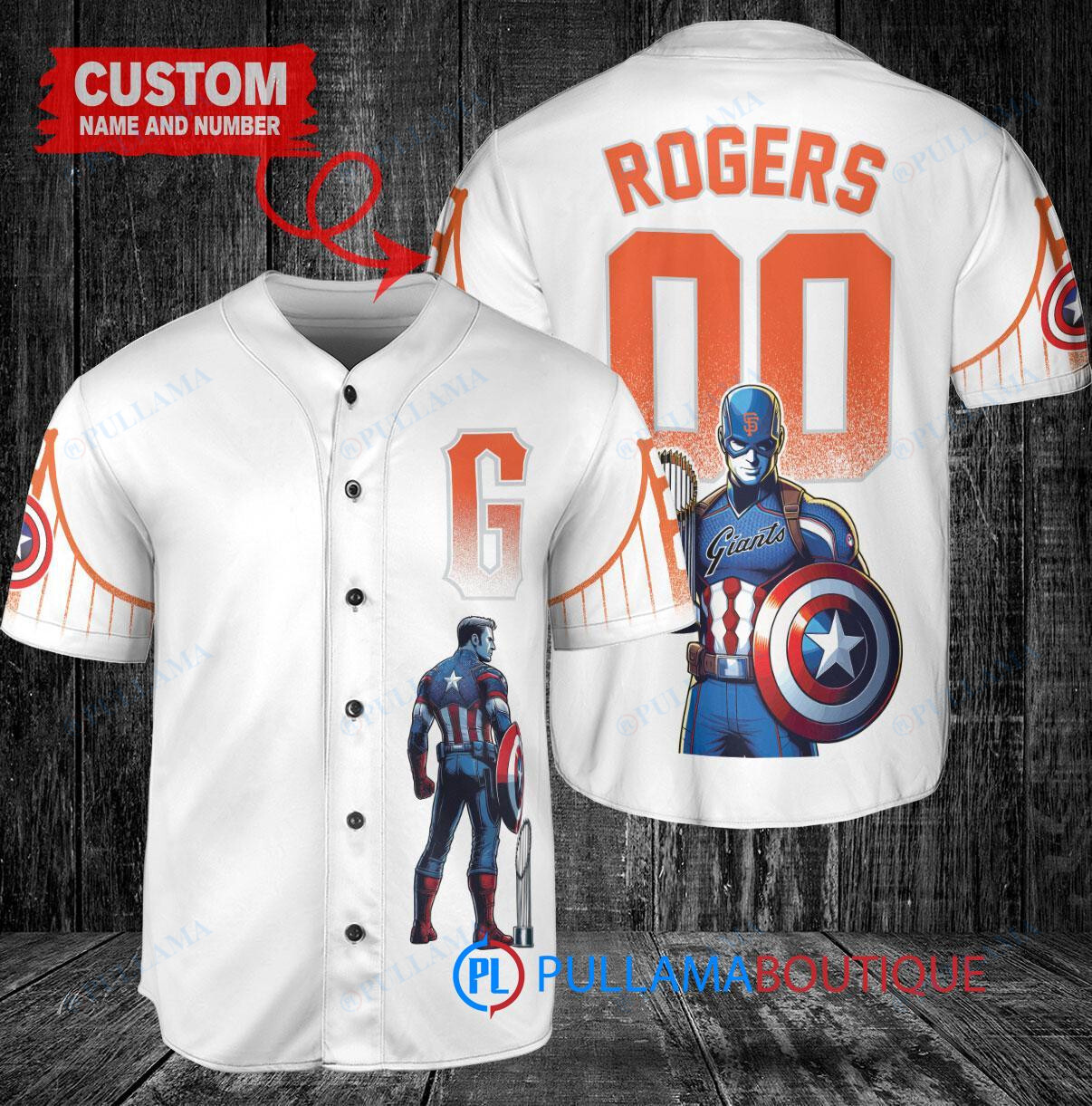 San Francisco Giants x Marvel Captain America Steve Rogers with Trophy Custom Baseball Jersey White City Connect