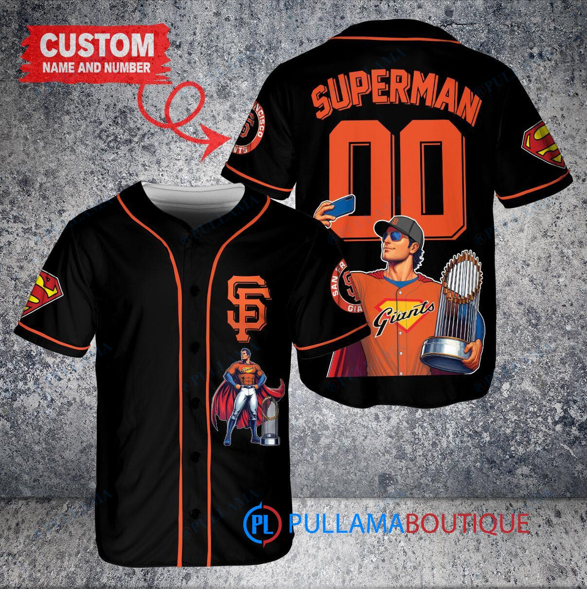 San Francisco Giants x Superman DC Comics with Trophy Custom Baseball Jersey Black