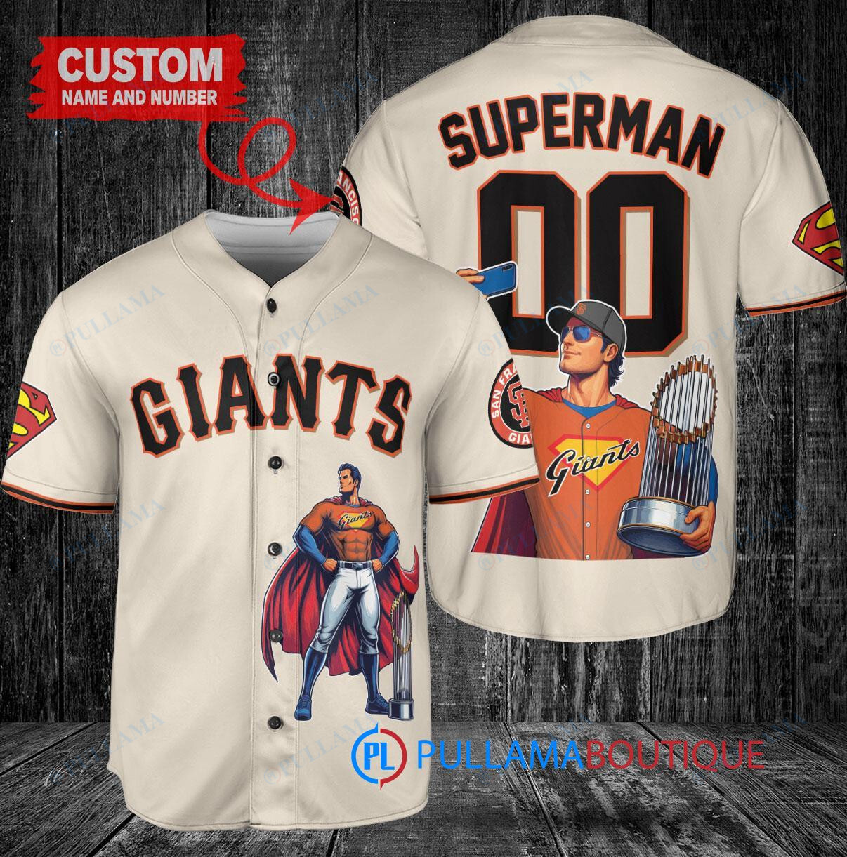 San Francisco Giants x Superman DC Comics with Trophy Custom Baseball Jersey Cream
