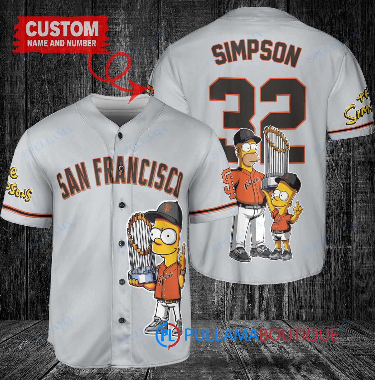 San Francisco Giants x The Simpsons Bart Simpson, Homer Simpson, Lisa Simpson with Trophy Custom Baseball Jersey Gray