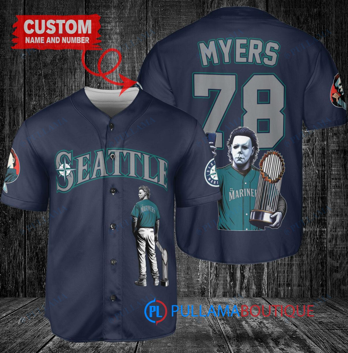Seattle Mariners x Halloween Michael Myers with Trophy Custom Baseball Jersey Royal