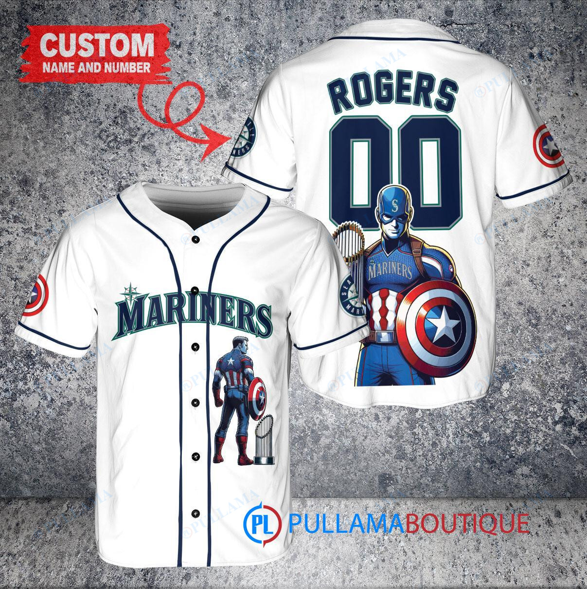 Seattle Mariners x Marvel Captain America Steve Rogers with Trophy Custom Baseball Jersey White