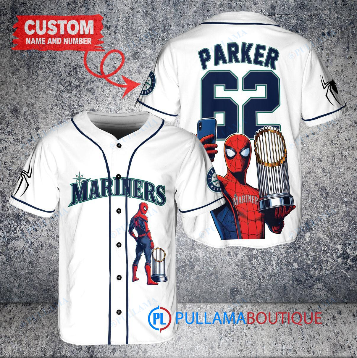 Show your support for the Seattle Mariners with this custom baseball jersey featuring a unique Marvel Spiderman design. This white jersey is perfect for any fan looking to stand out in the crowd. Made with high-quality materials, this jersey is comfortable to wear at games or just hanging out. Get your hands on this limited edition jersey and swing into action like your favorite superhero!