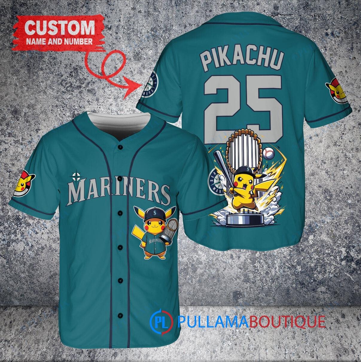 Seattle Mariners x Pikachu Pokemon with Trophy Custom Baseball Jersey Aqua