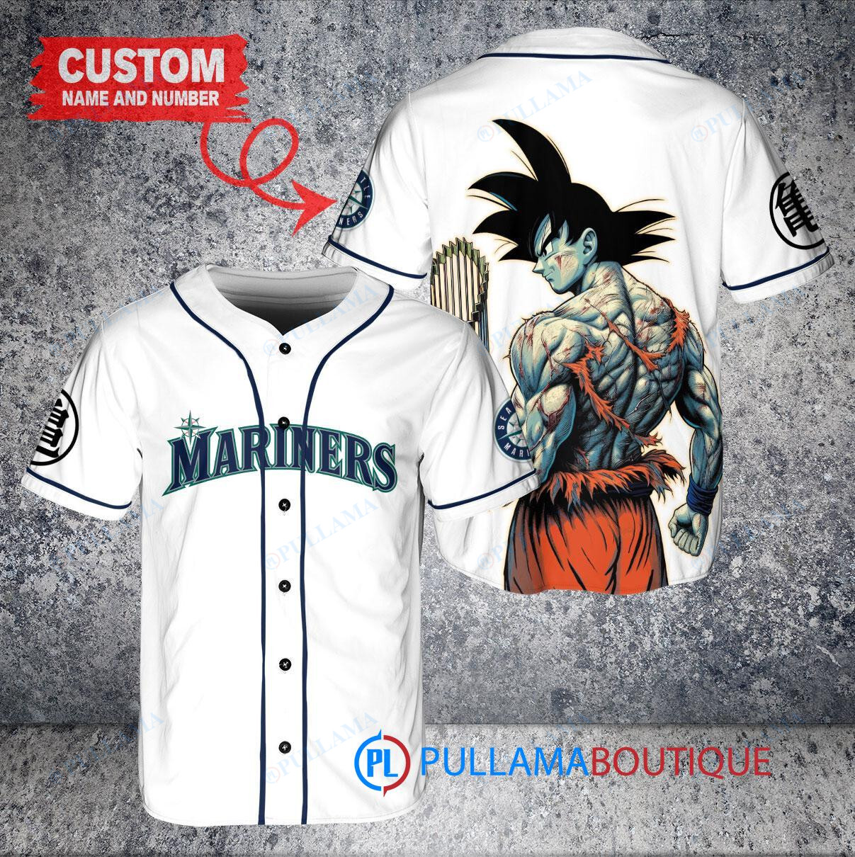 Seattle Mariners x Son Goku Kakarot Super Saiyan Dragon Ball Z with Trophy Baseball Jersey White
