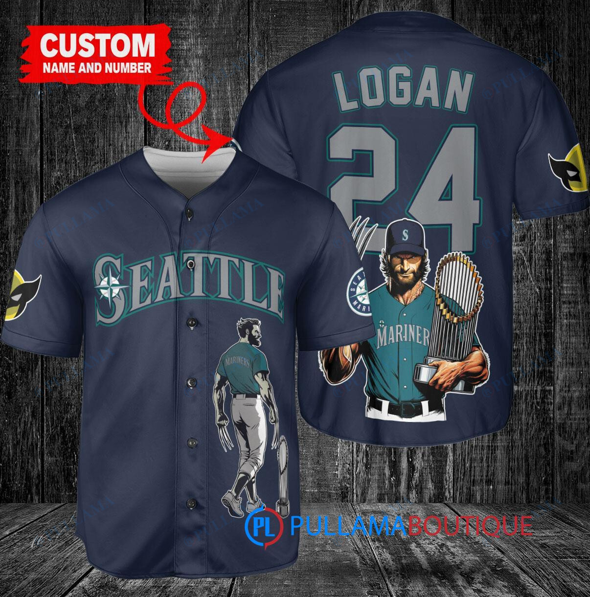 Show your support for the Seattle Mariners with this custom baseball jersey featuring Wolverine Logan holding a trophy. This royal blue jersey is perfect for any fan looking to stand out in the crowd. Made with high-quality materials, this jersey is comfortable to wear while showing off your team pride. Perfect for game days or casual wear, this jersey is a must-have for any Mariners fan.