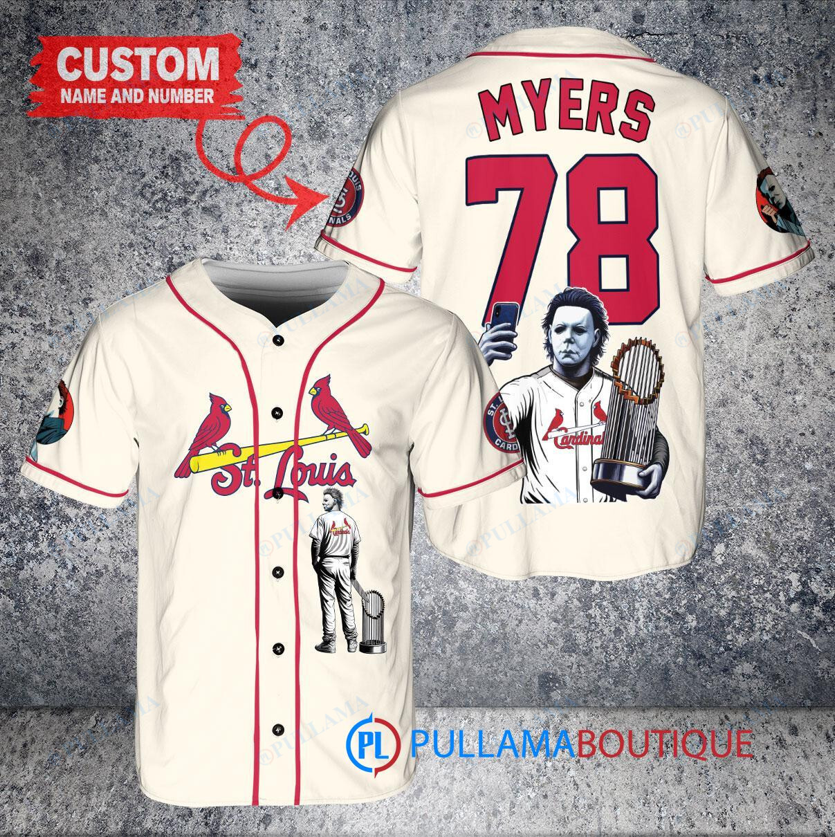 St. Louis Cardinals x Halloween Michael Myers with Trophy Custom Baseball Jersey Cream