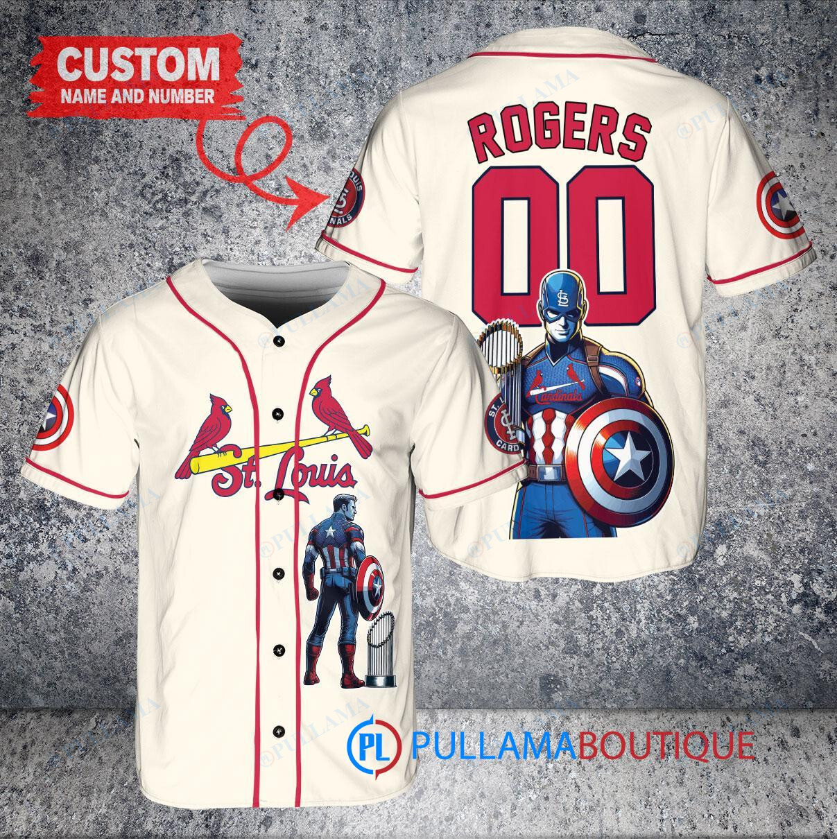 St. Louis Cardinals x Marvel Captain America Steve Rogers with Trophy Custom Baseball Jersey Cream