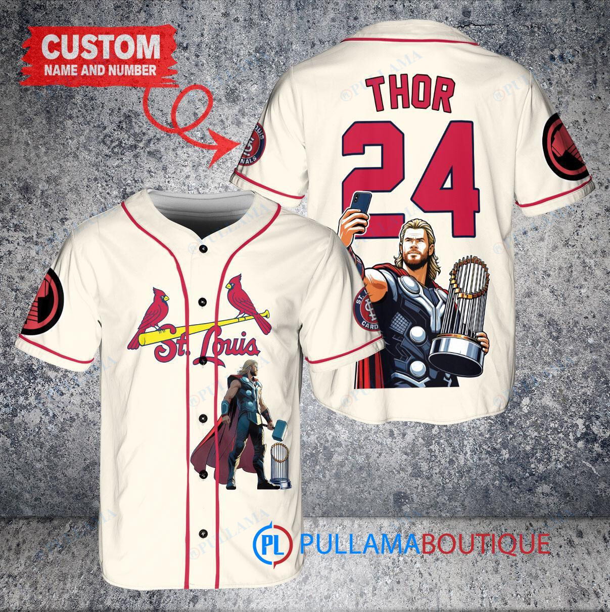 St. Louis Cardinals x Thor Marvel with Trophy Custom Baseball Jersey Cream