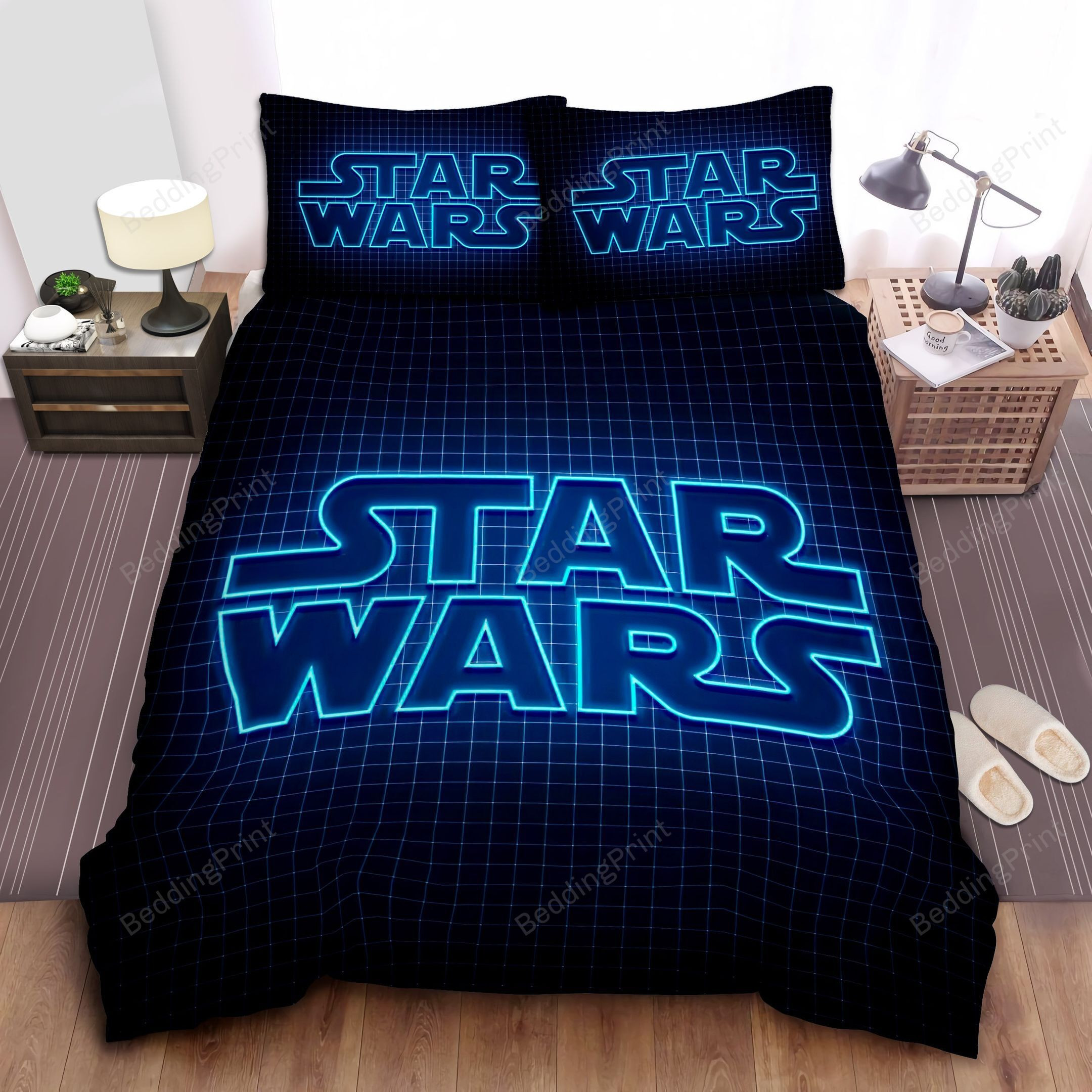 Star Wars Blue Neon Logo Bed Sheets Duvet Cover Bedding Sets