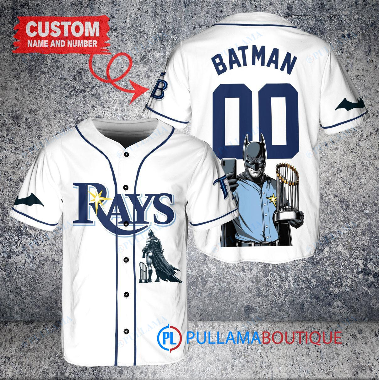 Tampa Bay Rays x DC Comics Batman The Dark Knight with Trophy Custom Baseball Jersey White Alternate Replica