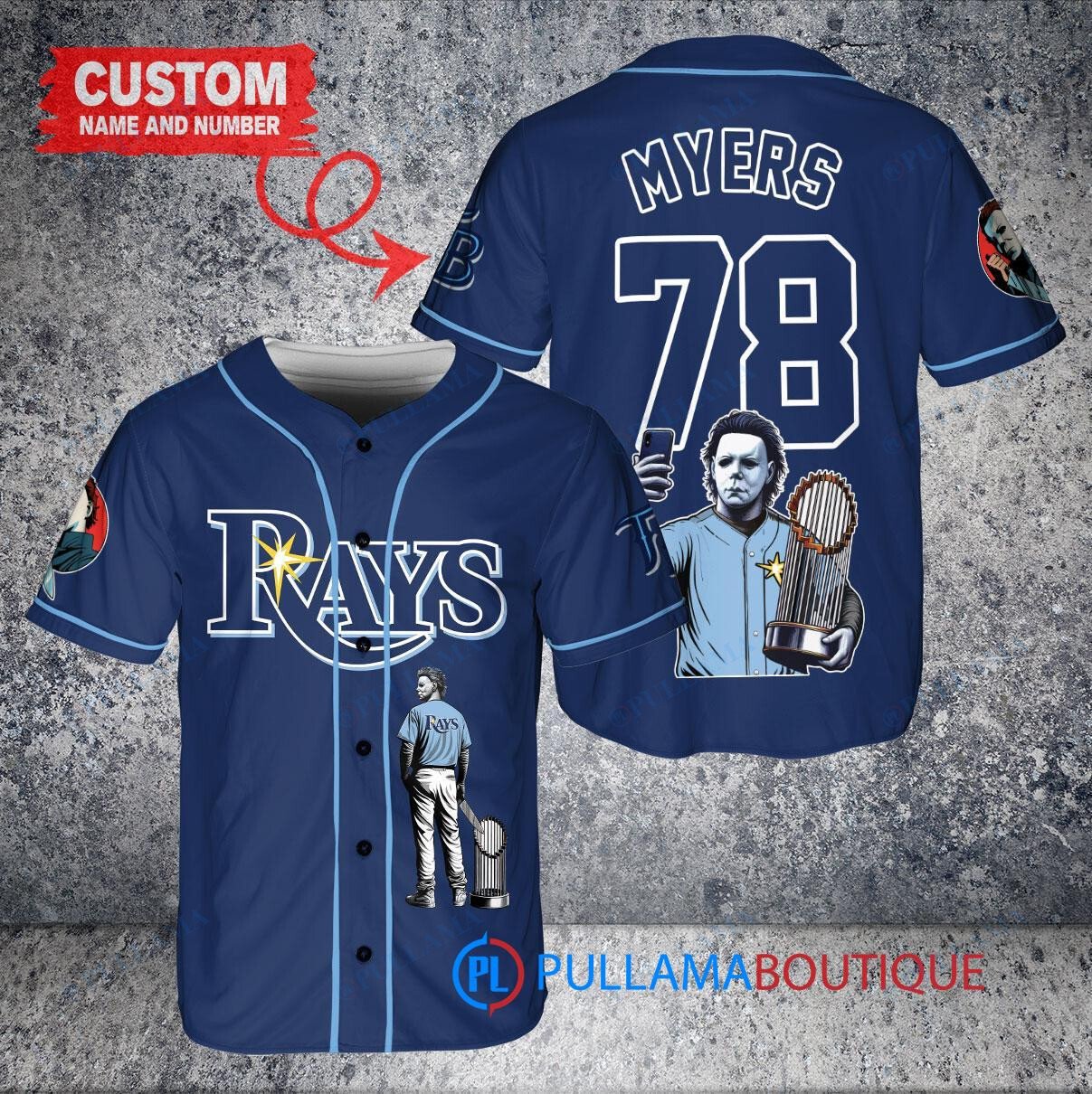 Tampa Bay Rays x Halloween Michael Myers with Trophy Custom Baseball Jersey Navy