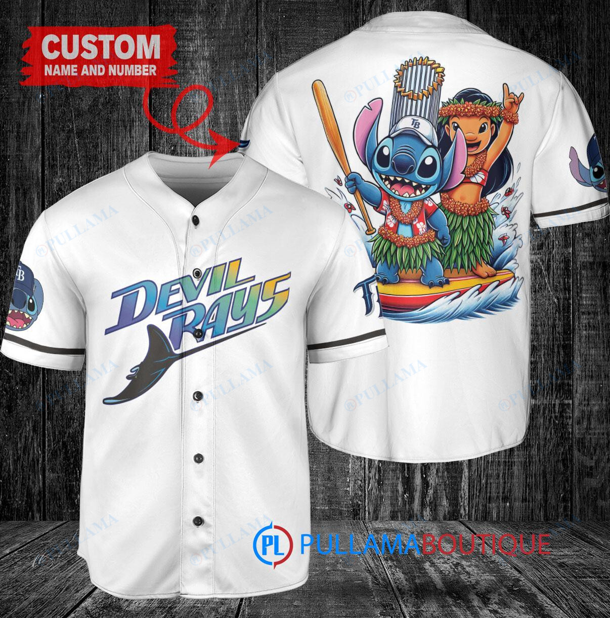 Show your love for the Tampa Bay Rays with this Lilo & Stitch themed baseball jersey. This white home replica jersey features a unique design inspired by the beloved Disney character, Stitch. Made with high-quality materials, this jersey is perfect for any Rays fan looking to stand out in the crowd. Get your hands on this trophy baseball jersey and show off your team spirit in style.