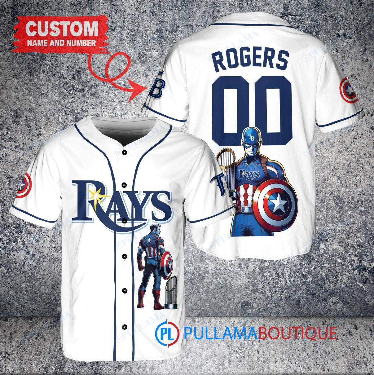 Tampa Bay Rays x Marvel Captain America Steve Rogers with Trophy Custom Baseball Jersey White Alternate Replica