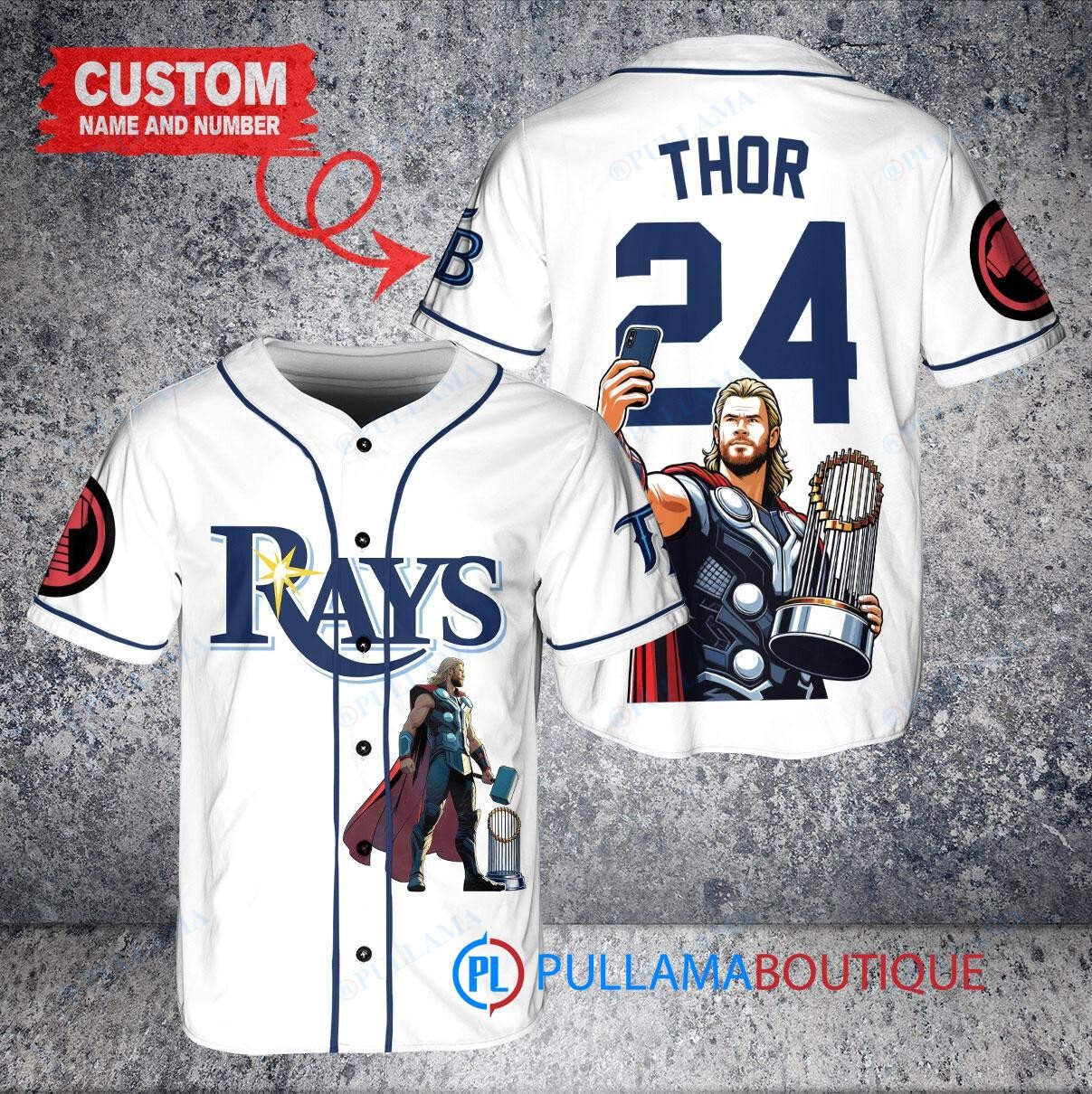 Tampa Bay Rays x Thor Marvel with Trophy Custom Baseball Jersey White Alternate Replica
