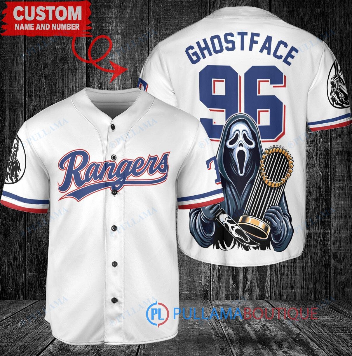 Texas Rangers Ghostface Scream Halloween World Series Trophy Baseball Jersey White